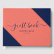 Elegant navy blue and coral wedding guest book with modern calligraphy. Easily personalize online. Matching items available to complement this wedding guest book.