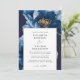 Modern Navy Blue And Gold Floral Chic Wedding Invitation