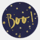 Modern Navy Blue and Gold Stars Halloween Boo! Classic Round Sticker