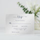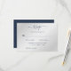 Complement your navy blue and silver wedding party with these elegant RSVP cards featuring your desired response date and custom accept/decline wording. Invite guests to indicate their entrée preferences, and add your custom meal choices. Matching items available. Navy blue and silver wedding RSVP cards.