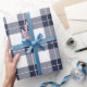 Modern Navy Blue and White Plaid Pattern Wrapping Paper