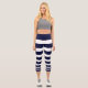Modern navy blue and white striped Capri Leggings. Trendy nautical blue and white leggings!