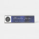Custom add your own Company Logo Luxury Executive Navy Blue Foil Metallic Stainless Steel Minimalist Business Name Plate with white lettered typography for the monogrammed add your own cursive script signature name and job title or position. The Metal Business Professional Name Plate can be customized with your name. Please contact the designer for customized matching items.
