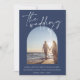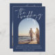 Modern Navy Blue Arch Initial Photo Wedding Invitation