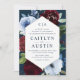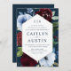 modern navy blue burgundy flowers wedding invitation