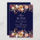 Modern Navy Blue Burnt Orange Wildflowers Wedding Save The Date