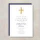 Modern Navy Blue Cross Boy First Communion Invitation.