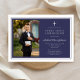 Modern Navy Blue Cross Boy Photo First Communion Invitation