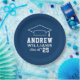 Custom round graduation paper plates features a navy blue and white design (can be modified via "Customize It!") with a graduation cap and custom text for the grad's name and class year.
