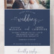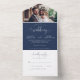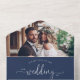 Modern Navy Blue Elegant Chic Script Photo Wedding All In One Invitation