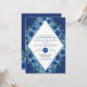 Navy blue watercolor floral wedding invitation, diamond shaped. Customize names, dates, and information.