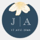 Modern Navy Blue Floral Wedding Sticker & Labels