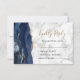 Modern Navy Blue Gold Agate Marble Wedding RSVP Card