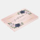Elegant navy blue and blush wedding guest book with modern calligraphy and gold frame decorated with roses. Matching items available.