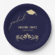 Modern Navy Blue Gold Grad Cap Graduation Paper Plate
