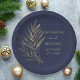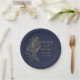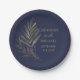 Modern Navy Blue Gold Leaf Wedding Monogram Paper Plate