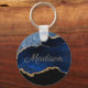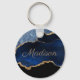 Modern Navy Blue Gold Marble Glitter First Name Keychain