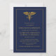 Modern, elegant, and stylish navy blue and gold nursing school/ RN graduation party invitation with a caduceus. Contact me for assistance with your customizations or to request additional matching or coordinating products for your celebration.
