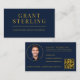 Present your brand with confidence using this modern navy and gold real estate business card.