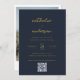 Modern Navy Blue Gold Script Photo QR Code Wedding Invitation