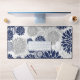 Modern Navy Blue Grey Flower Pattern Desk Mat