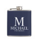 Modern Navy Blue Personalized Groomsman Hip Flask
