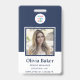 Modern Navy Blue Photo Barcode Business Logo Name Badge