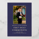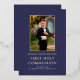 Modern Navy Blue Photo Boy First Communion Gold Foil Invitation.