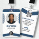 This professional navy blue and white employee ID badge is designed with a clean, geometric pattern that exudes corporate sophistication. It features ample space for a photo, name, title, and ID number, ensuring clear identification for your staff. The modern design incorporates subtle decorative elements, making it both functional and stylish for any business environment. Perfect for general managers, staff, and employees who need a professional identification solution.