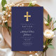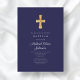 Modern Navy Blue Religious Cross Boy Baptism Invitation