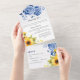Modern Navy Blue Rose And Sunflower Wedding All In One Invitation