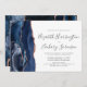Modern Navy Blue Rose Gold Agate Wedding Invite