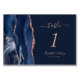 Modern Navy Blue Rose Gold Agate Wedding Table Number