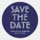 Modern navy blue wedding save the date sticker/envelope seal. Easily edit online with your wedding details.
