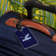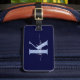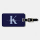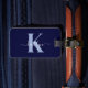 This simple, elegant navy blue luggage tag with your first name in a trendy script font in white typed over your first initial in a modern cap font in light blue on one side and your name, address and phone number on the other would look fabulous on your suitcases. It's stylish and trendy and yet very classic.