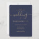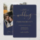 Modern navy blue script photo initials wedding invitation