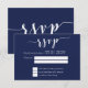 Modern Navy Blue Script Wedding RSVP Card