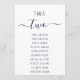 Modern Navy Blue Script White Seating Chart Card