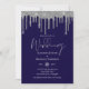Modern Navy Blue Silver Dripping Glitter Wedding