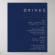 Modern Navy Blue Silver Wedding Drinks Menu Poster
