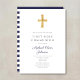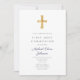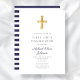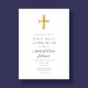 Modern Navy Blue Stripes Cross Boy First Communion Invitation
