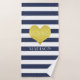 Modern Navy Blue Stripes Pattern Name Bath Towel Set.