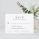 Modern Minimalist Wedding RSVP depicts navy blue text on a white background. They feature accepts, declines, number attending and meal choices.