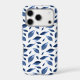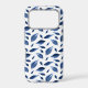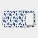 Pretty navy blue phone case that features a modern watercolor leaf pattern.
