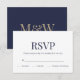 Modern Navy Blue White Monogram RSVP Card