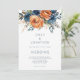 Modern Navy Burnt Orange Florals QR Code Wedding Invitation