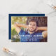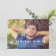Announce your graduate in style with this modern graduation announcement card and party invitation. Design features a senior photo of your grad with white striped overlay wording that can be personalized with the graduates name, school, and class year. Includes an invitation to a graduation party on the back. The navy blue and white colour scheme can be customized to coordinate with your photo or party colours.