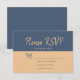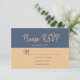 Chic simple minimalist hand lettered like calligraphy modern wedding invitation RSVP with copper rose gold script on midnight blue and tan background. Matching invitations available.