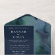 Elements: rich dark tones, abstract watercolor background, light frame details, and classic serif fonts. Colours: blue, green, navy, dusty blue, steel blue, slate blue, sage green, hunter, highland, mint. Themes: modern, contemporary, abstract, moody, under the sea, ocean, dark colour tones, minimalist, painterly, bohemian. Collection: Modern Navy Emerald Abstract Watercolor Wedding Collection. Product Type: All-In-One Wedding Invitations