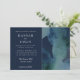 Elements: rich dark tones, abstract watercolor background, light frame details, and classic serif fonts. Colours: blue, green, navy, dusty blue, steel blue, slate blue, sage green, hunter, highland, mint. Themes: modern, contemporary, abstract, moody, under the sea, ocean, dark colour tones, minimalist, painterly, bohemian. Collection: Modern Navy Emerald Abstract Watercolor Wedding Collection. Product Type: Wedding Invitations